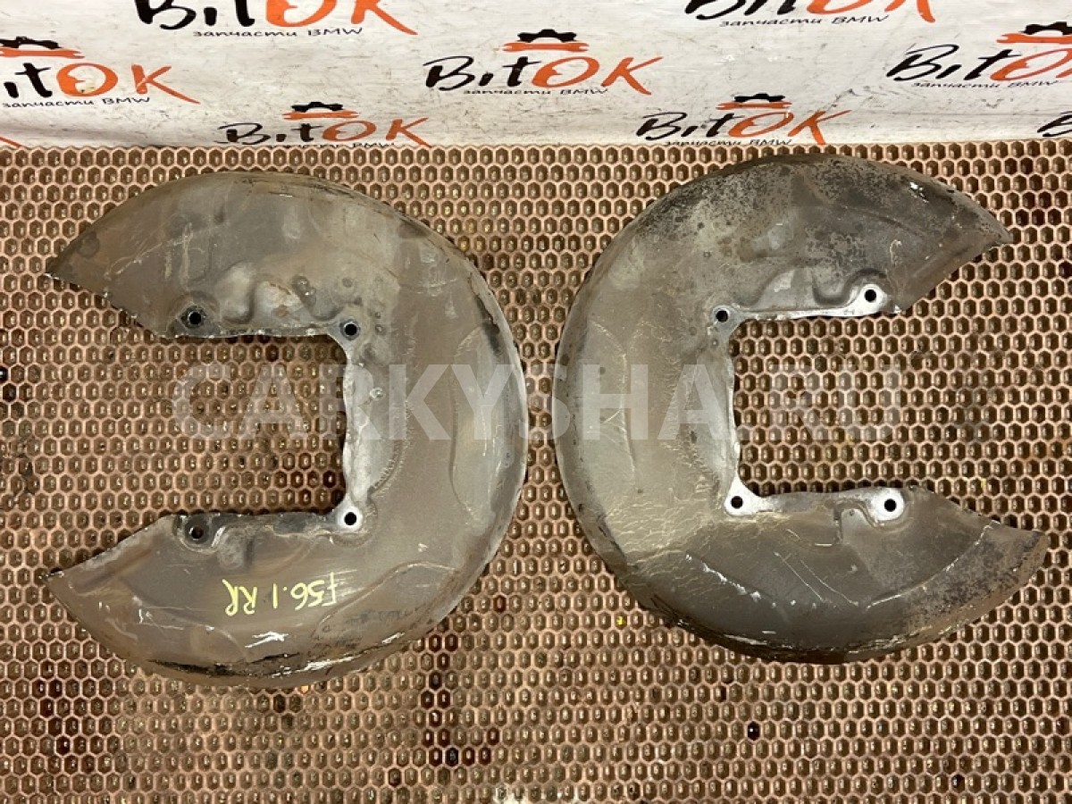 Защитные щитки кожухи задних тормозных дисков мини купера ф54 ф55 ф56 ф57 ф60 БМВ ф40 ф52 ф45 ф46 х1 ф48 ф49 х2 ф39.\nМеста креплений щитка к кулаку без коррозии.\nПродажа парой, цена за оба.\n\nЗапчасть снята с японского распила BMW. \nОригинал. \nБез пробега по РФ.